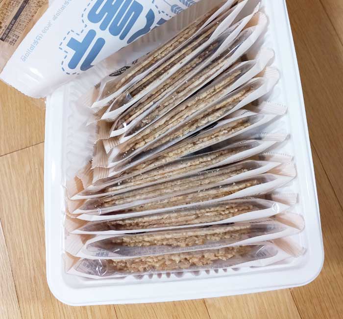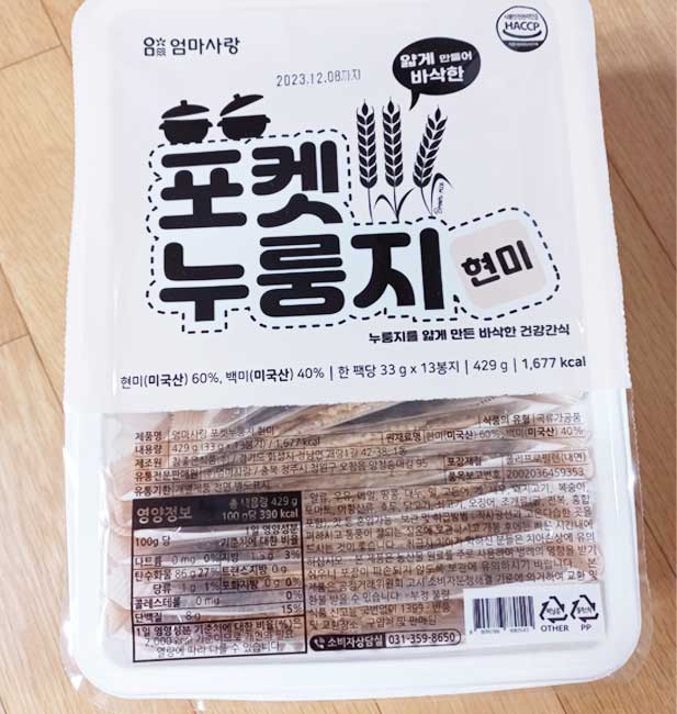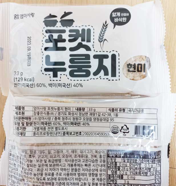 그리고 한 봉지에 누룽지가 3장씩 들어 있어요.